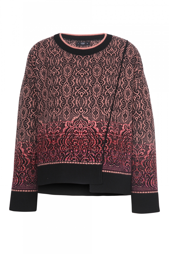 Asymmetric pullover, 40% wool, 30% viscose, 20% nylon, 10% cashmere